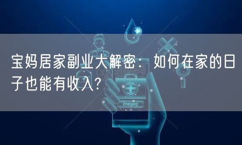 随着社会的发展和生活节奏的变化,越来越多的宝妈选择在家照顾孩子,但同时也希望能够在家庭中拥有自己的经济来源。那么,如何在家的日子也能有收入呢?本文将为广大宝妈揭秘居家副业赚钱的秘密。