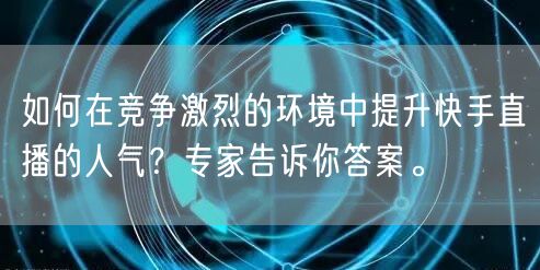 如何在竞争激烈的环境中提升快手直播的人气?专家告诉你答案。