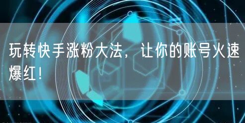 以上是本文关于玩转快手涨粉大法的内容,希望能对你的快手账号运营有所帮助。