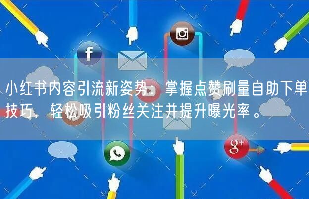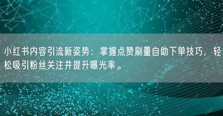 小红书内容引流新姿势:掌握点赞刷量自助下单技巧,轻松吸引粉丝关注并提升曝光率。
